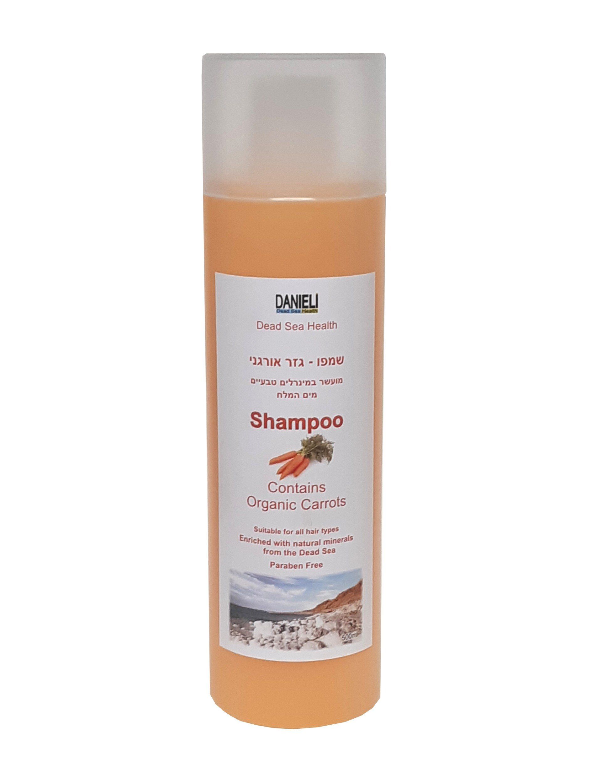 שמפו גזר אורגני מכיל מינרלים טבעיים מים המלח , מועשר בתמציות גזר אורגני המכילות בטה קרוטן אשר מסייע רבות לשיקום עור הקרקפת.